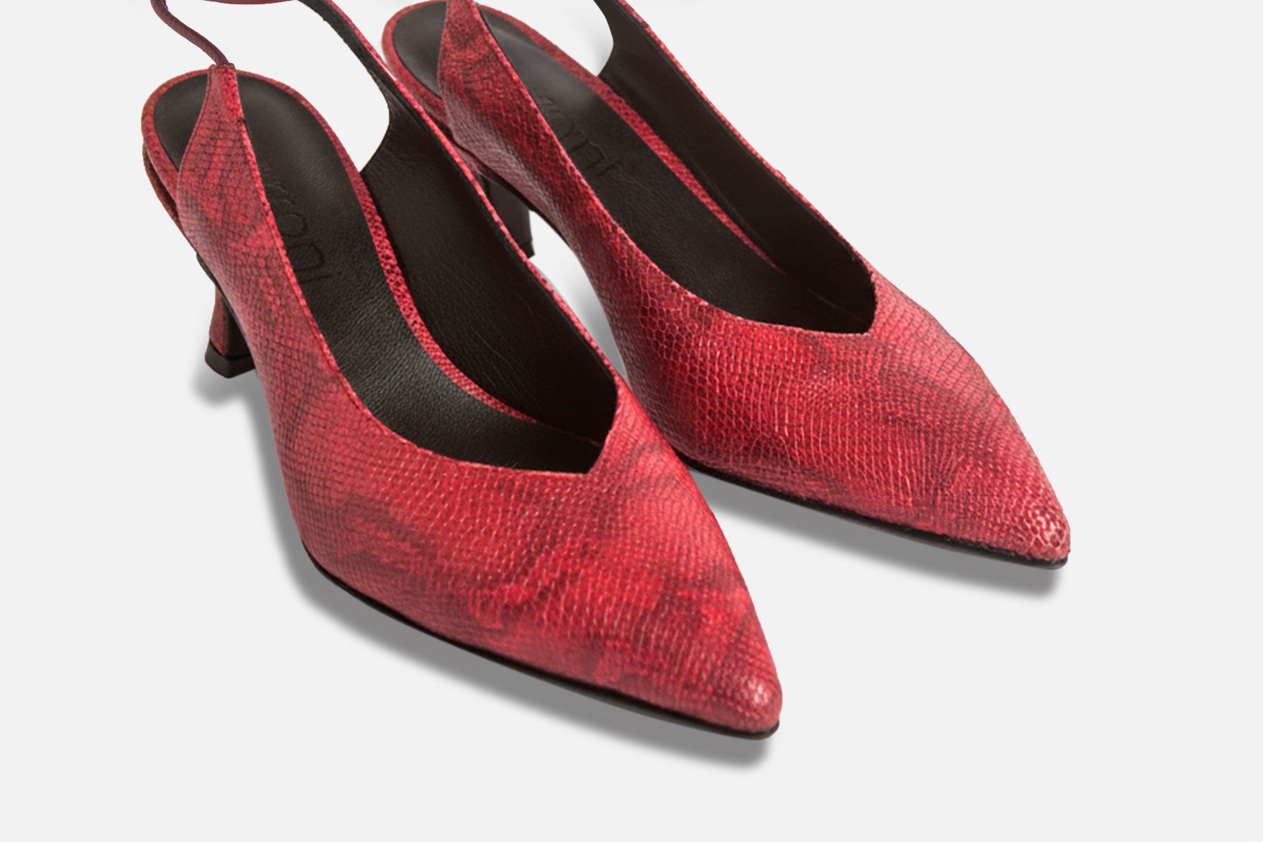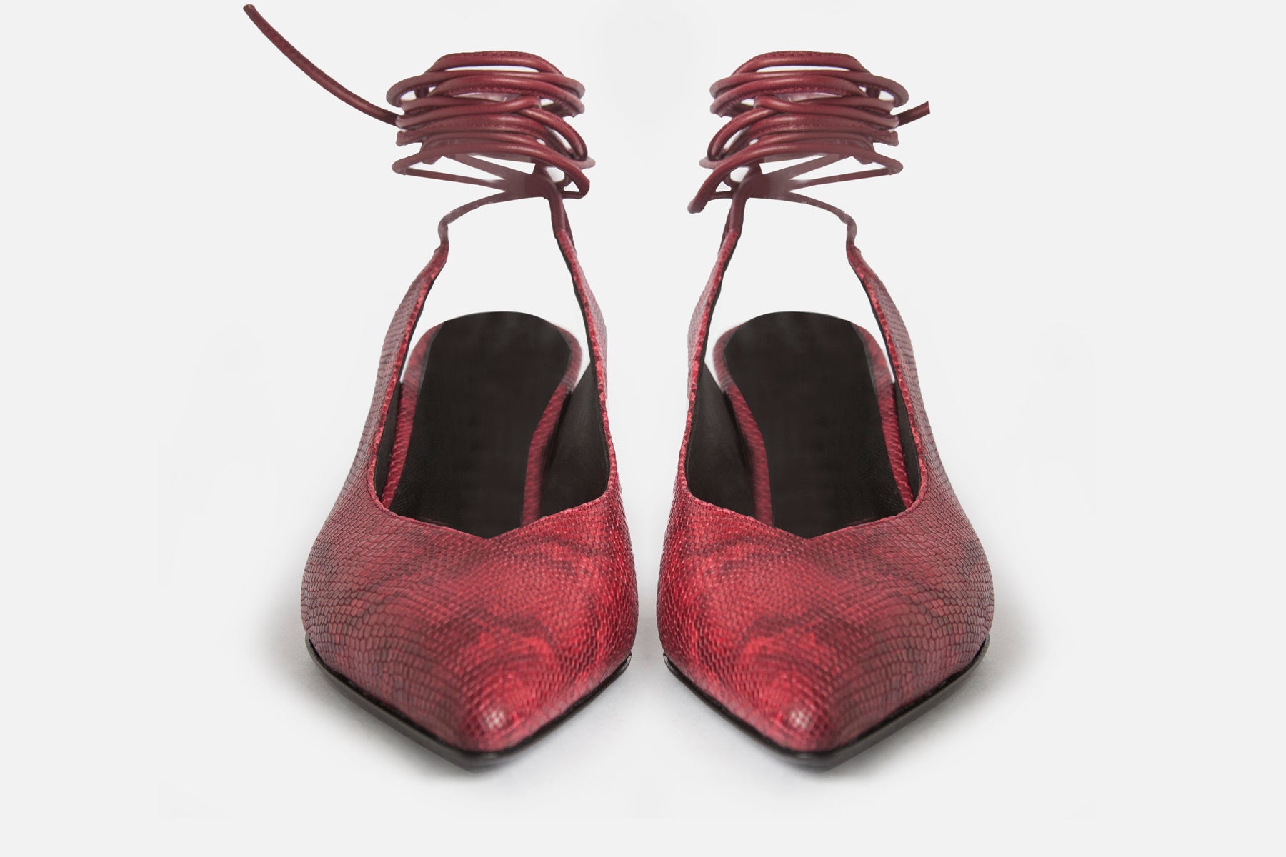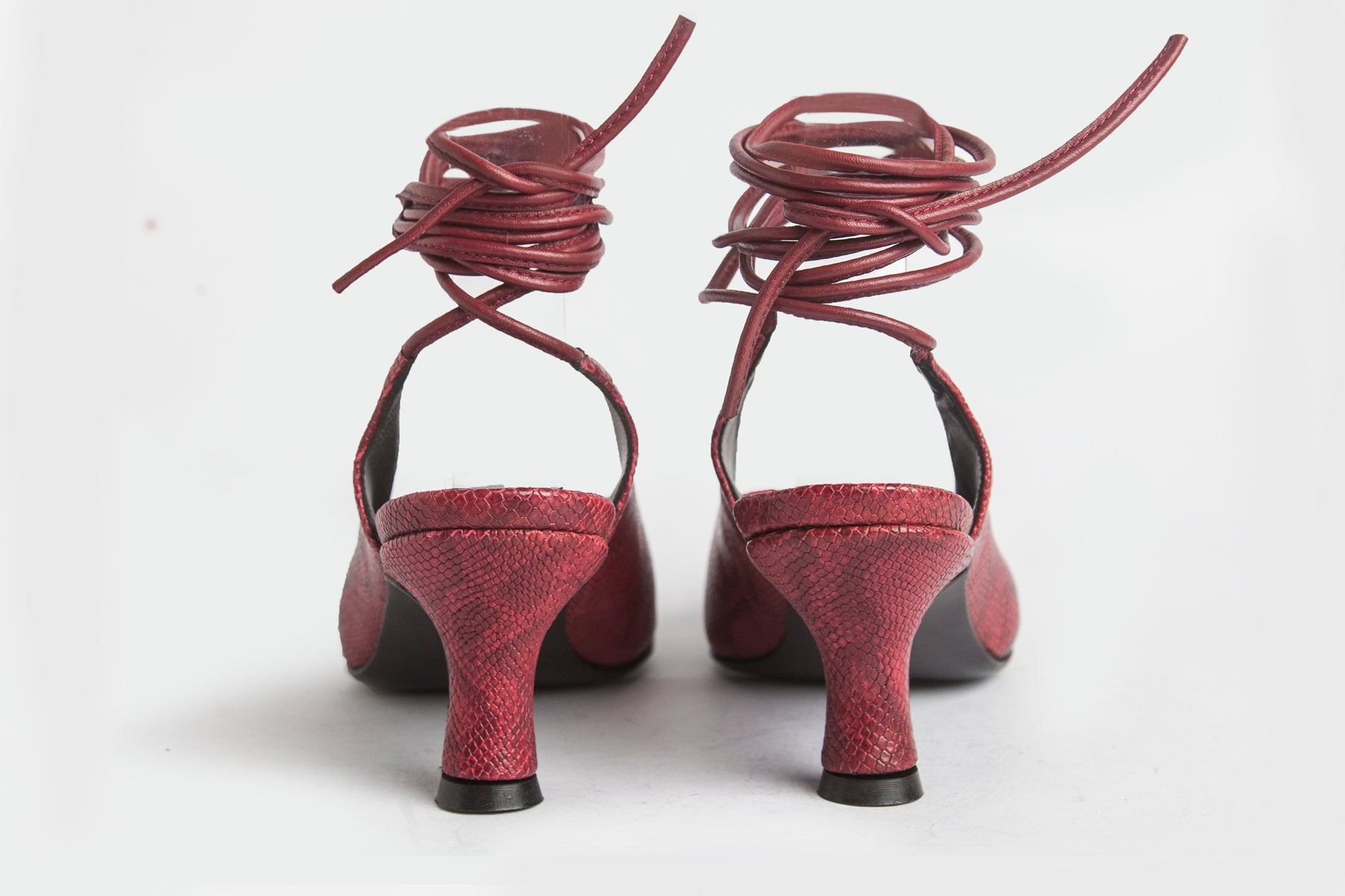 Zapato hecho en cuero vacuno simil print iguanita. Forrado en cuero de cabra y con altura de 5cm. Suela de cuero y tira larga para usarla en el tobillo o treparla en las piernas.